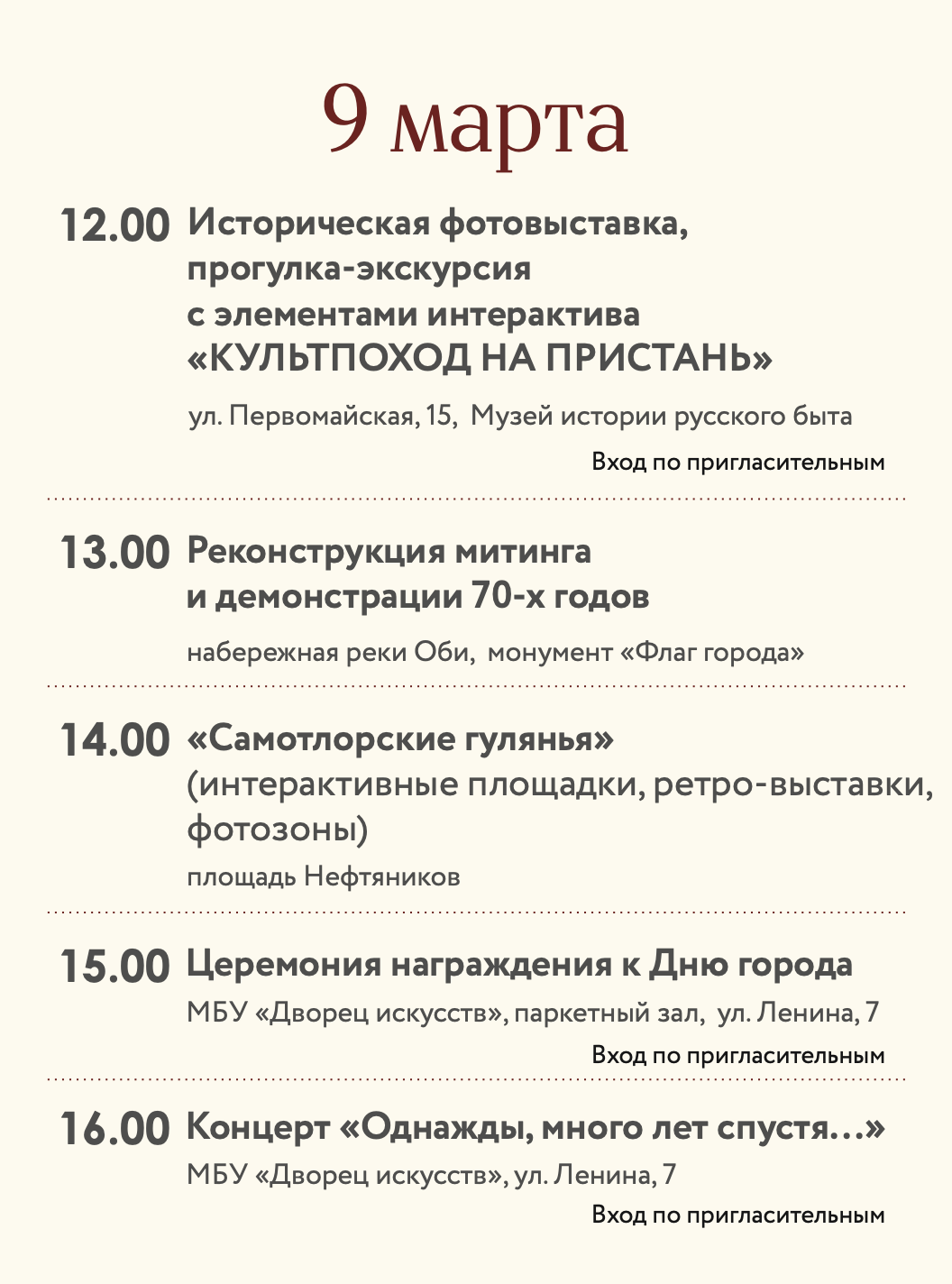 Первая встреча намечена на 13:00 в Музее истории русского быта, где стартует прогулка-экскурсия «КультПоход на пристань». Участники смогут погрузиться в историю и узнать интересные факты о становлении города.